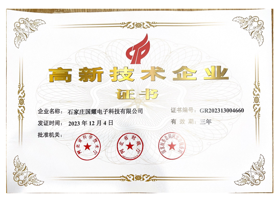 石家莊國耀電子科技有限公司成立于1998年,注冊資本1000萬元,位于石家莊市高新技術產(chǎn)業(yè)開發(fā)區(qū),是國家高新技術企業(yè)和軟件企業(yè)。 公司主要從事各類高頻開關電源、電力電子產(chǎn)品的開發(fā)與生產(chǎn),先后推出了AC/DC、DC/DC、DC/AC電源系列數(shù)百個品種,廣泛應用于通信、軍事、電力、節(jié)能等多個領域。 產(chǎn)品技術居國內(nèi)先進水平,部分居國內(nèi)先進和國際先進水平。